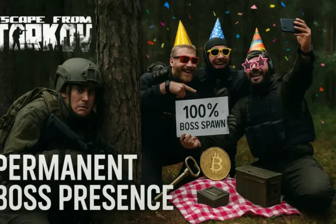 Escape from Tarkov permanent boss presence event started on 5 July 2025. Tarkov bosses 100 percent spawn chance is active on all boss locations in Tarkov PvE. This event is a Tarkov pre-wipe event, good for boss farming and high tier loot.