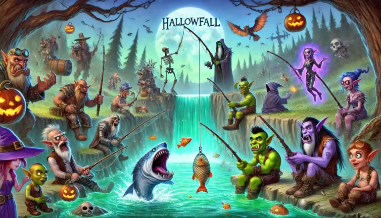 The Hallowfall Fishing Derby is a fun fishing event in The War Within game. Every Saturday, players go to Hallowfall to get a special quest from Captain Oathmyt. This quest asks you to catch three special fish in one hour. While fishing, you can get special marks called Mereldar Derby Marks. You can use these marks to buy cool items like clothes, weapons, or recipes. You can only do this quest once per week with one character in your Warband.